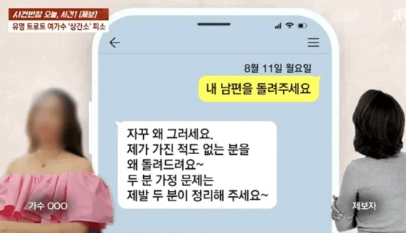 얼마전 방송된 사건반장에서 트로트 여가수 A씨가 상간 소송에 휘말렸다는 방송을 했는데 그 속 여가수가 숙행이라는 제보가 나오고 있습니다.