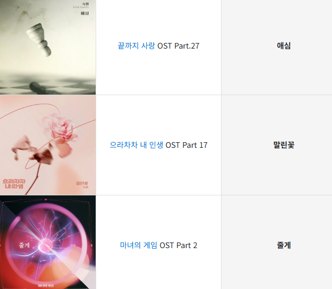 또한 드라마 OST 참여 등으로 ‘부캐’처럼 OST 가수 면모도 보여주고 있으며, 인터뷰에서 “트로트 가수도 숙행, OST 가수도 숙행”이라고 밝히며 장르의 경계를 크게 두지 않는 태도를 드러냈습니다.